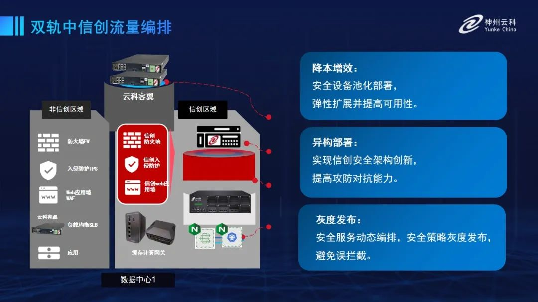 神州9500金沙安全流量解决方案通过把安全产品池化和旁挂部署,使安全架构变得简单清晰,进而实现安全设备池化部署,弹性扩展并提高可用性,提高攻防对抗能力,实现了安全服务动态编排,安全策略灰度发布,避免误拦截。